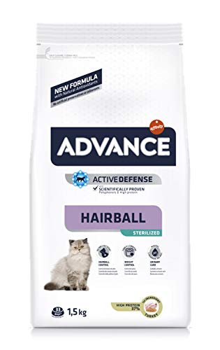 Advance Cat Hairball Sterilized, Pienso para Gatos Adultos Esterilizados para prevenir la formación de Bolas de Pelo con Pavo, 1,5kg