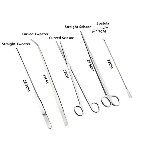 Signstek – Depósito de Acero Inoxidable Acuario Planta acuática Pinzas Tijera espátula Juego de Herramientas para acuarios y Peces Kits(5 Piezas)