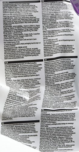 Science Selective Guinea Pig is recommended by vets and provides a tasty balanced diet for guinea pigs with natural ingredients including dandelion and fennel. It is high in fibre to help promote healthy teeth and tummies and has added vitamin C to help keep your guinea pigs in the very best of health. Selective also contains linseed, a particularly good source of omega 3, which helps to regulate coat shine, thickness and colour intensity, as well as supporting a healthy skin. Nutritional Additives/kg: Vitamin A 23000 IU, Vitamin C 800 mg, VitaminD3 1500 IU Analytical Constituents: Protein 16.0%, Crude fibre 15.0%, Fat content 4.0%, Inorganic matter 6.5%, Calcium 0.8%, Phosphorus 0.5%